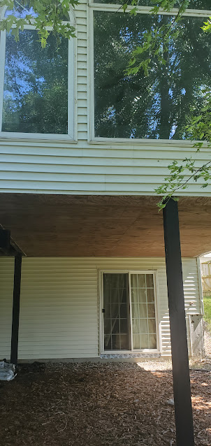 I painted the garage door at the bottom where more rust was showing through. Plus, painted the trim around the front door. I want the trim around the front door replaced with plastic trim because then we'd never have to paint it again. It peels and is looking kind of rough! So more projects but easy to finish and not a whole lot of cost to do.